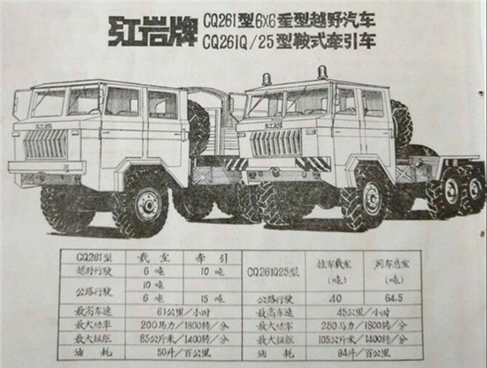 10噸級(jí)紅巖CQ261型6×6重型軍用越野汽車(chē)和紅巖CQ261Q/25型6x6牽引車(chē)發(fā)展歷程。