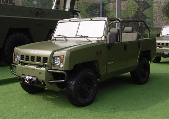 2007年8月2日,北汽控股公司在位于北京市順義區(qū)的北京汽車制造廠有限公司隆重舉行慶祝建軍80周年暨北京·勇士下線儀式。北汽勇士BJ2022型4×4軍用越野車自2007年列裝部隊(duì)以來,“勇士”越野車作為我軍第二代軍用指揮車,常年活躍在演訓(xùn)場(chǎng)上和邊防線上。2008年、2009年北汽勇士軍用車參加并圓滿完成汶川地震搶險(xiǎn),打擊暴恐勢(shì)力等多次重要軍事行動(dòng)!坝率俊笔怯杀本┢囍圃鞆S有限公司自主開發(fā)的,擁有完全自主知識(shí)產(chǎn)權(quán)的中國21世紀(jì)0.5噸/0.75噸級(jí)越野車。“勇士”外部造型是在研究了歐、美、日三大流派越野車造型發(fā)展趨勢(shì)的基礎(chǔ)上,結(jié)合中國文化特色和中國越野車的特點(diǎn)而設(shè)計(jì)的,具有原創(chuàng)性。