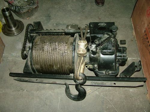 ——這種絞盤和船用的一樣,但它是直放而非一般的橫放形式。更特別的是,它上面沒有繞上鋼纜或麻繩,而僅有一個圓柱形的絞動鼓。使用這個PTO時比現代的絞盤還要簡單,只要開著引擎并把絞盤旁邊的波棍推進,圓柱體馬上會自轉。此時再將麻繩套在絞動鼓上一二圈,繩的另一端則以人手把持著,操作人用力拉,麻繩便會隨著絞動體一起轉。只要操作人不用力拉,繩子一放松,絞動鼓則自行旋轉但不會帶動麻繩。它的缺點是不能倒轉。