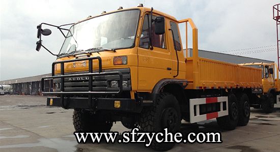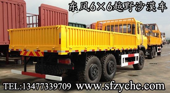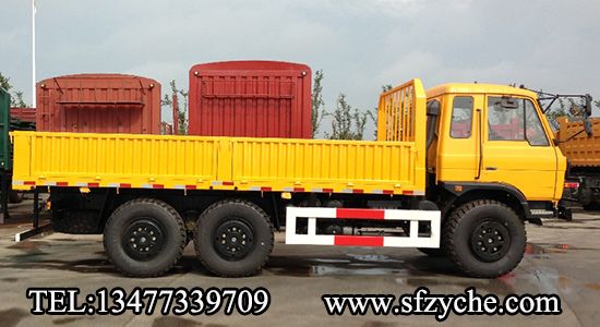 2、詳細配置:平頭一排半駕駛室,6*6驅(qū)動,康明斯190馬力,韶齒6檔變速箱,斷氣彈簧制動,貫通式中后驅(qū)動橋,12.5R20越野胎,軸距 3500+1250mm,加厚雙層大梁,貨箱4850mm,帶軍用保險杠。(新款仿天錦駕駛室加價1.5萬元)東風(fēng)越野卡車:www.xunta001.com