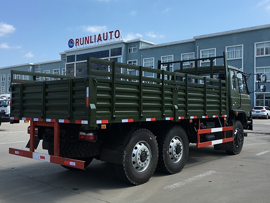 東風(fēng)新款國(guó)五六驅(qū)越野貨車配置簡(jiǎn)介:采用東風(fēng)EQ2220GD5DJ型越野汽車底盤,東風(fēng)D530老款駕駛室/D913豪華駕駛室可供選裝,6×6驅(qū)動(dòng),康明斯ISB190 50國(guó)五發(fā)動(dòng)機(jī),六檔變速箱,標(biāo)配315/80R22.5 20PR可換為12.5R20真空越野輪胎,軸距3500+1250mm,加厚雙層大梁,電動(dòng)玻璃,方向助力,斷氣剎,ABS,備胎一套,大箱長(zhǎng)度5米,墻板高度600mm。